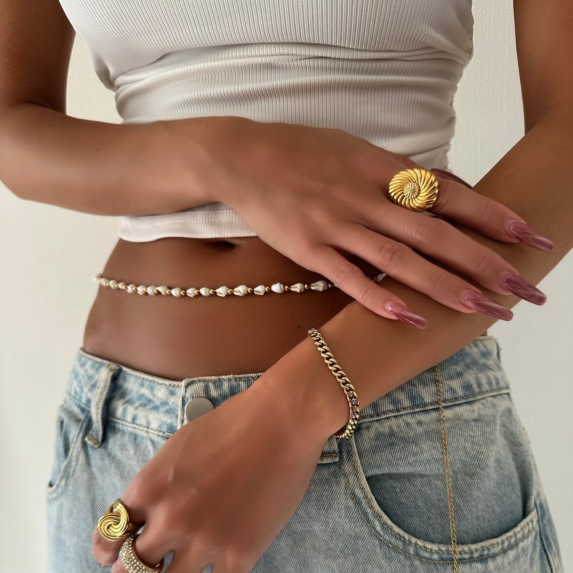 - 素材: サージカルステンレス316Lをベースに18K gold platedでコーティングされており、キュービックジルコニアストーンでカスタムされています。