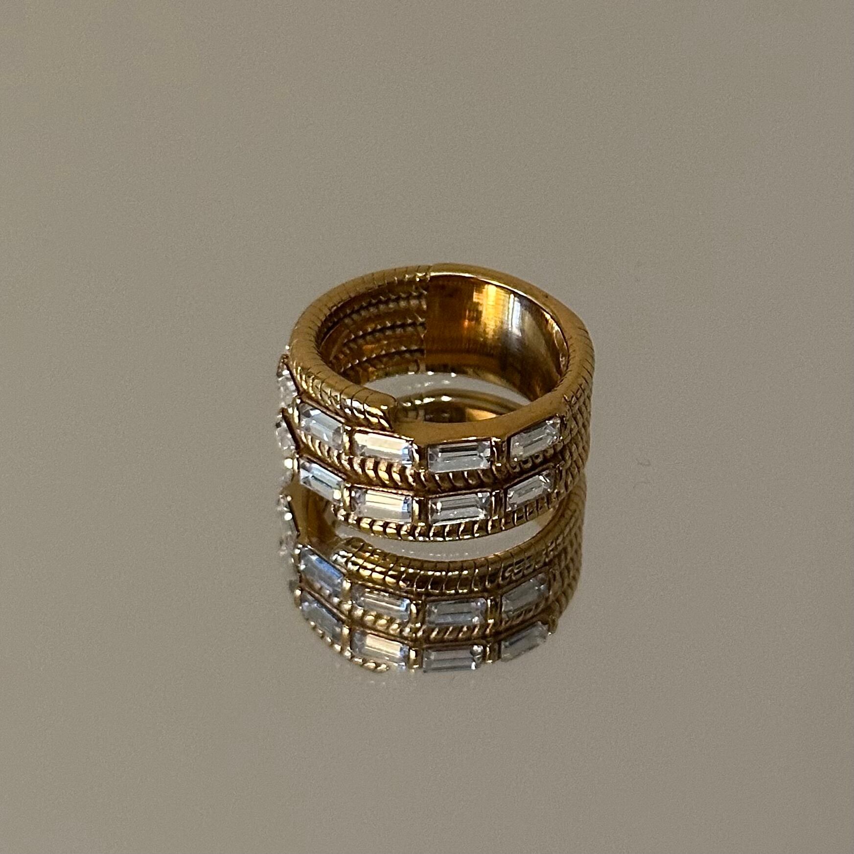 - 素材: サージカルステンレス316Lをベースに18K gold platedとPVDコーティングされ、ジルコニアストーンでカスタムされています。