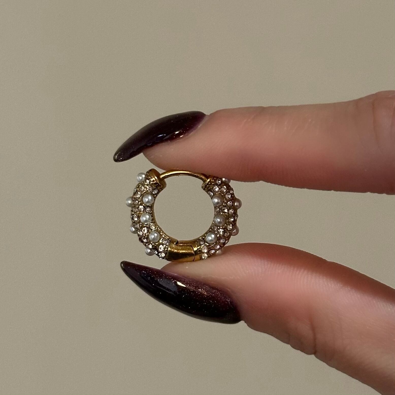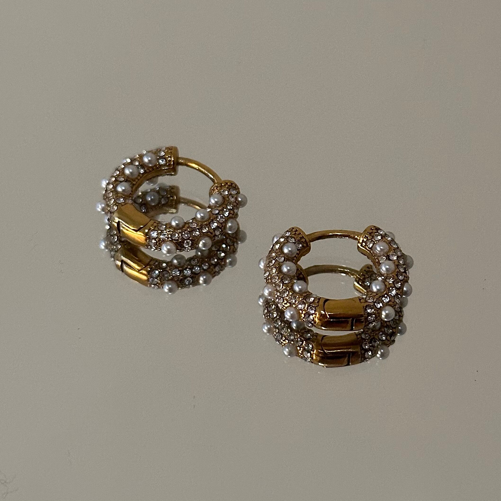 【 BUBBLE PEARL HOOP EARRINGS 】