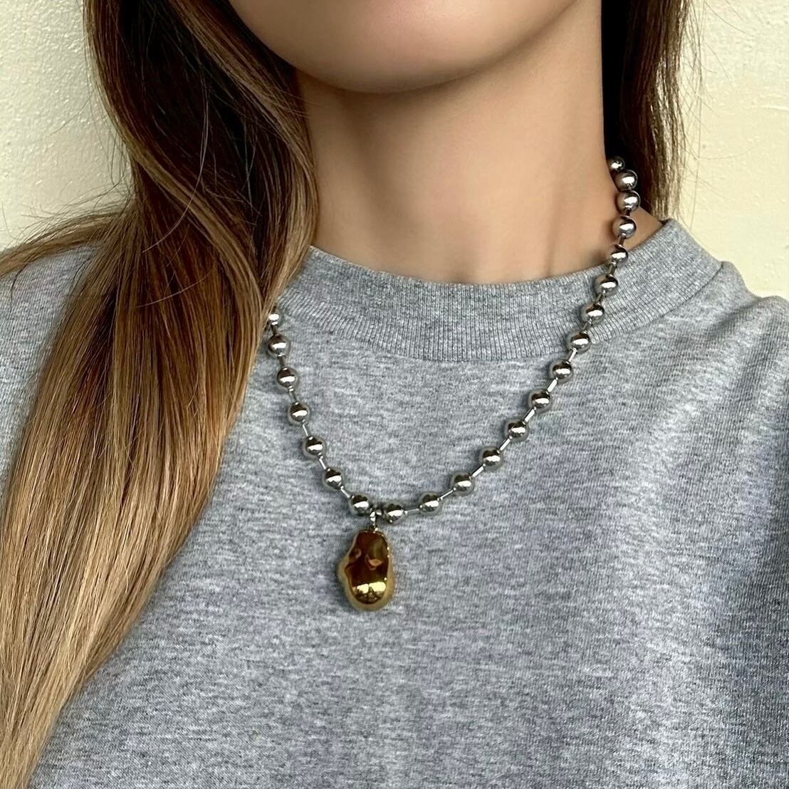 【 SILVER BALL NECKLACE " Theia " 】