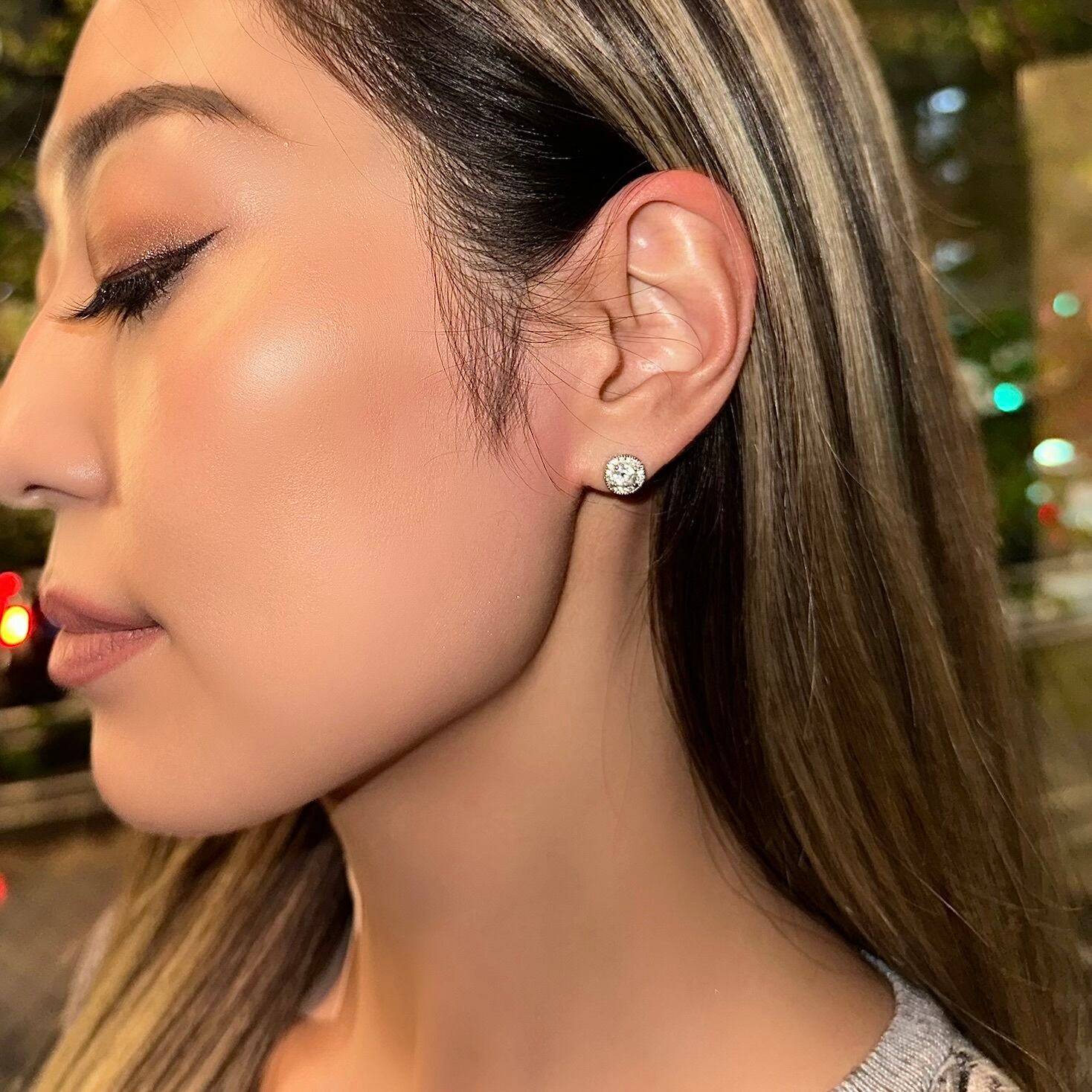 【 ROUND DIAMOND EARRINGS 】
