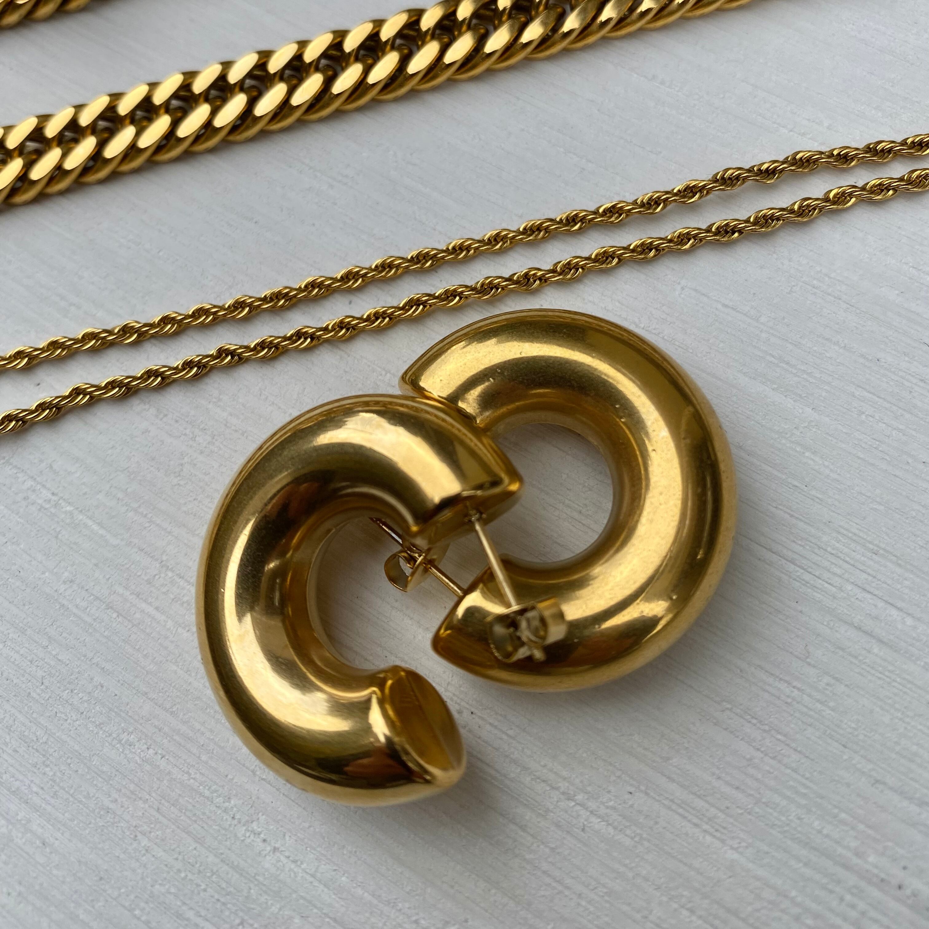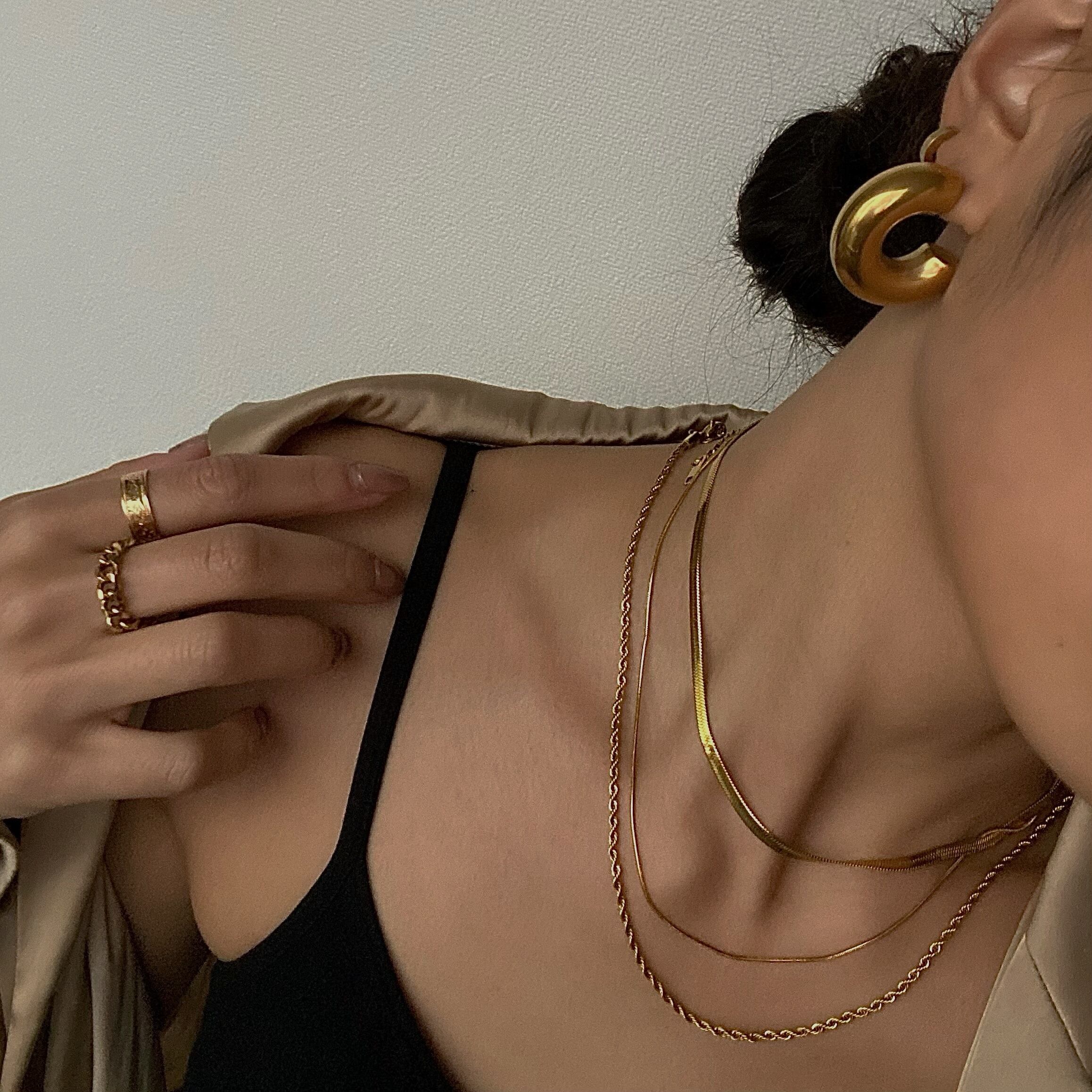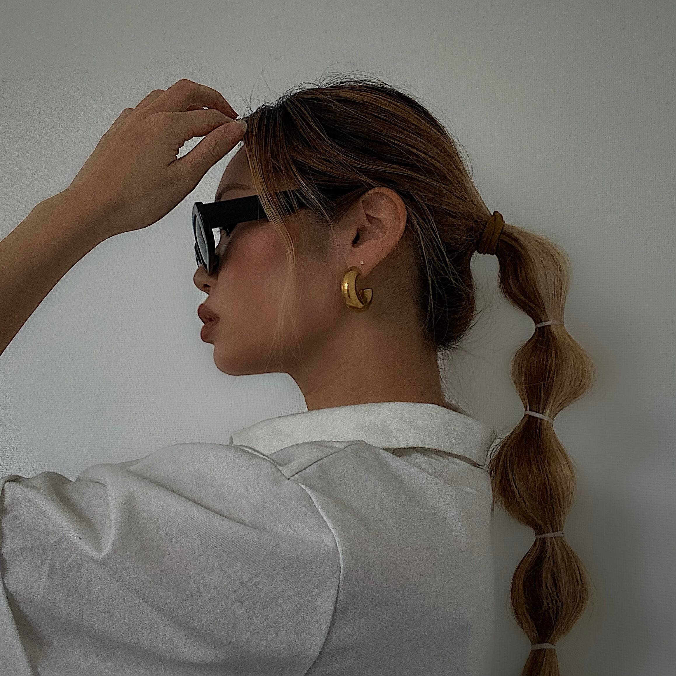 ボリュームのある大きめチューブイヤリングはスタイリングに存在感を与えてくれます。