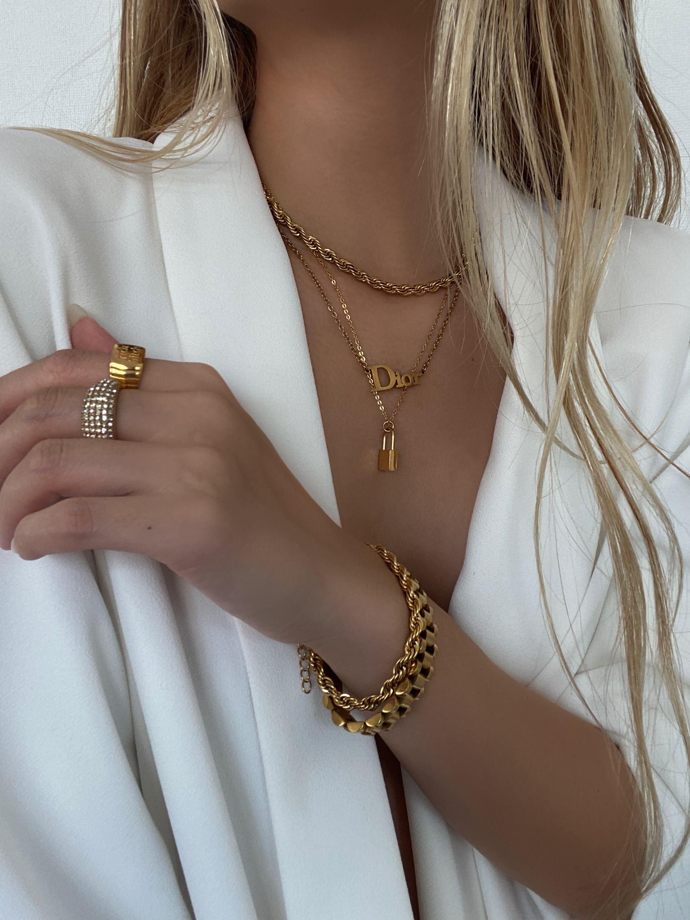 "ROPE CHAIN BRACELET"と合わせて付けるコンビネーションLOOKもオススメ。