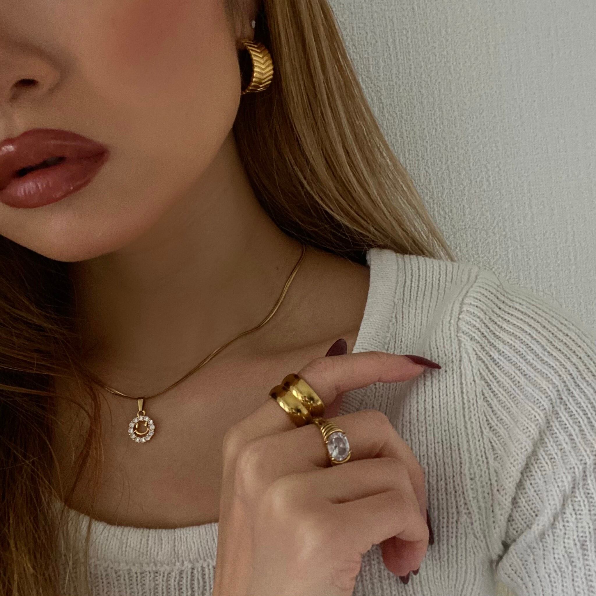 - Material: 18K gold plated over 316L Stainless Steel