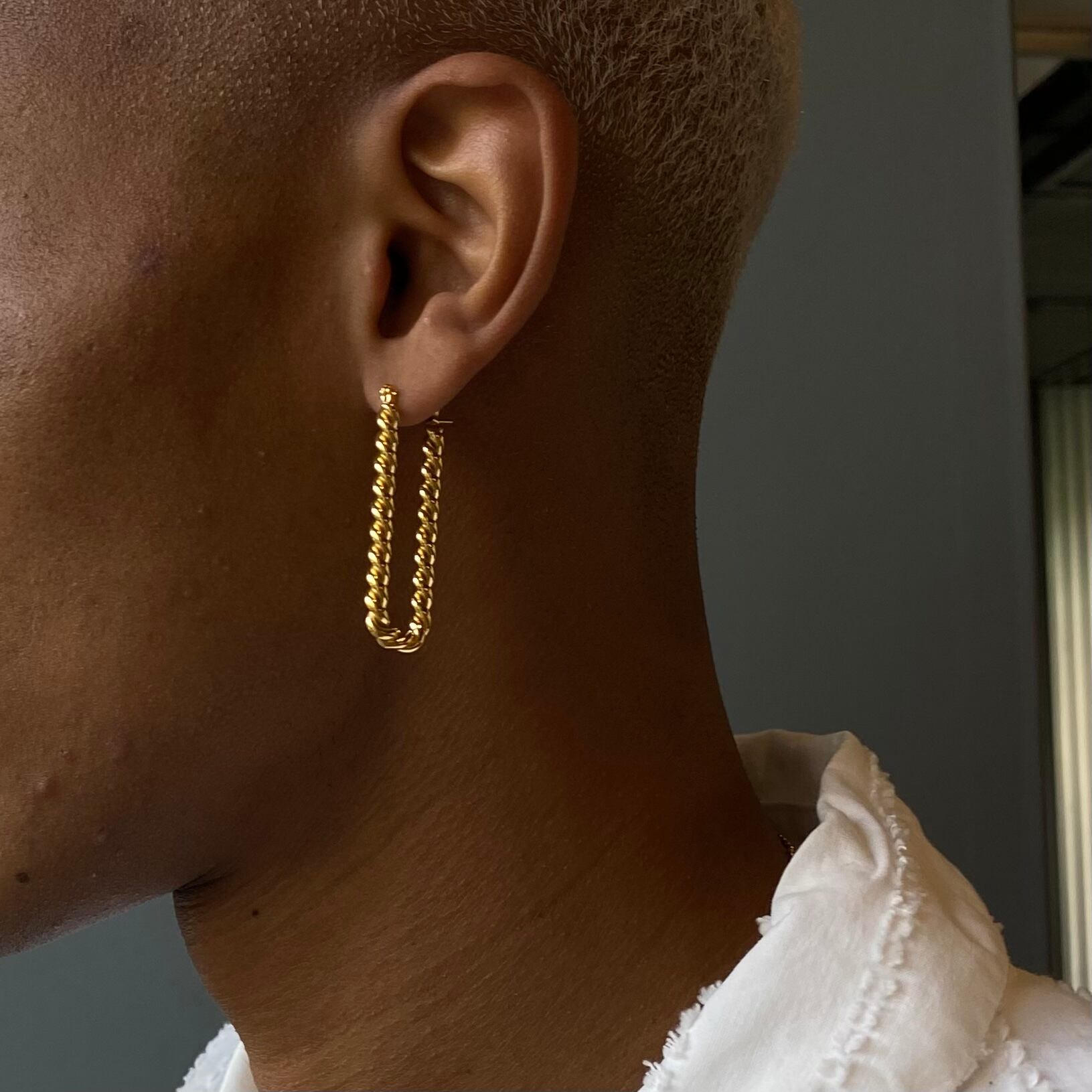 ロープのようにねじれたフープがどこかクラシックな雰囲気を醸し出します。