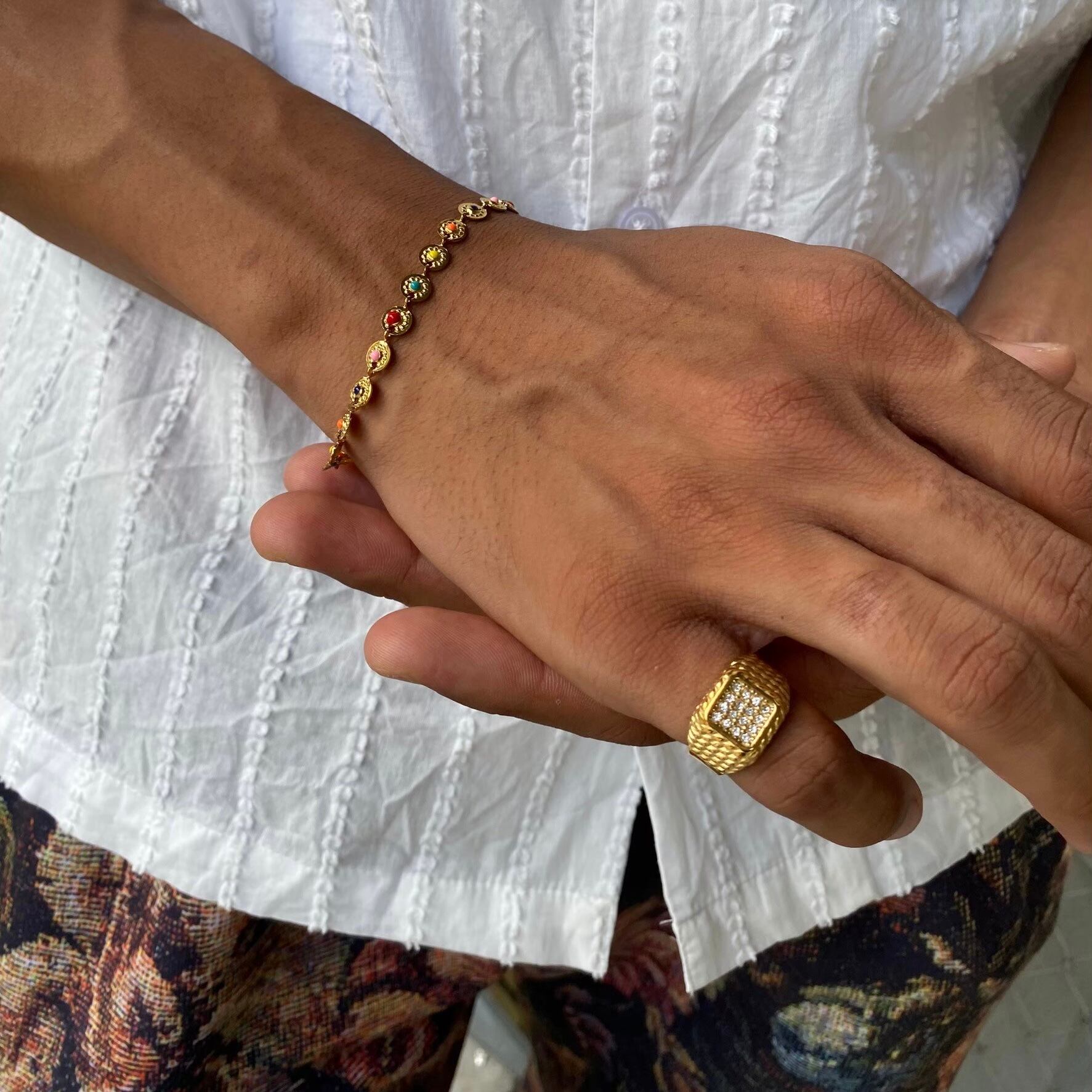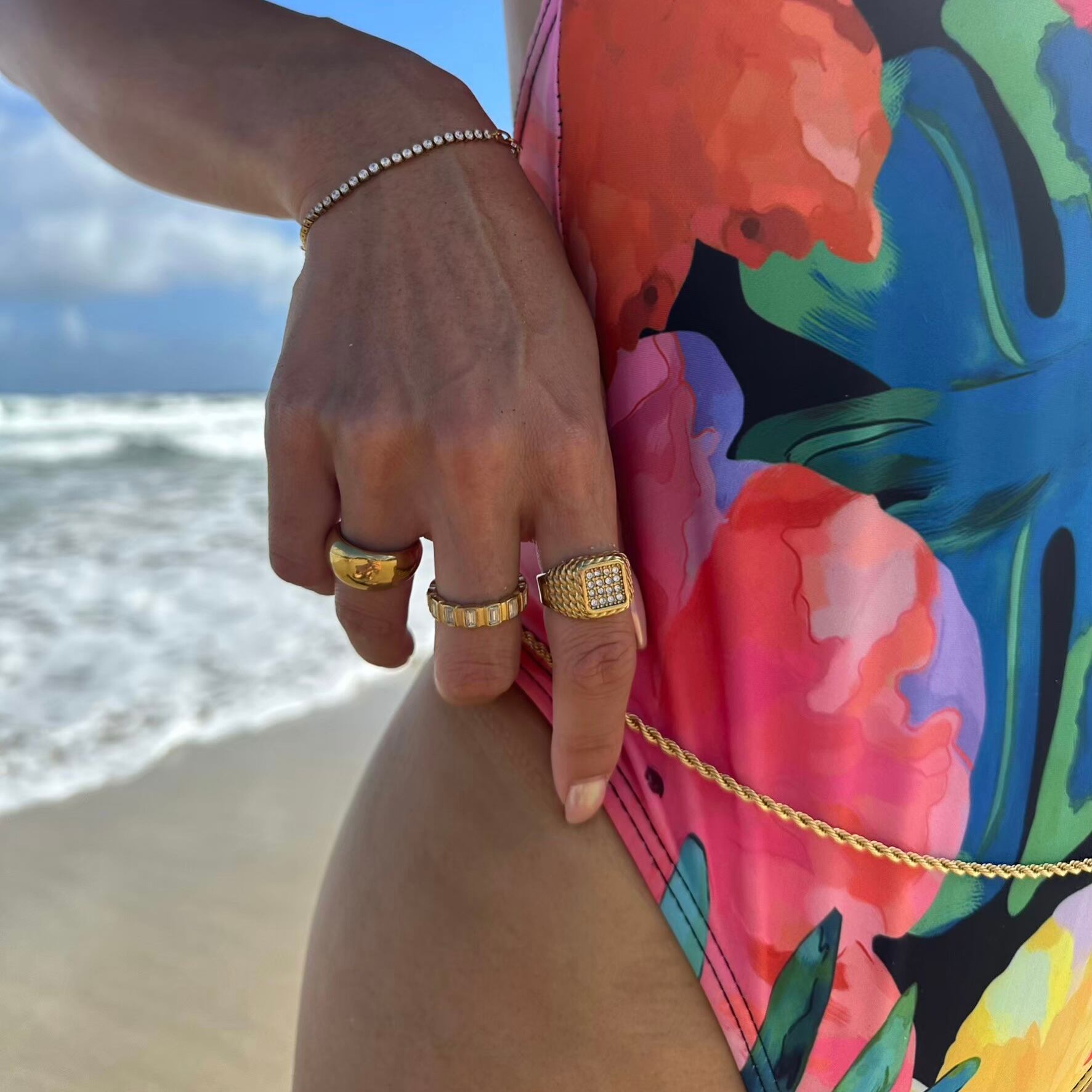 - Material: 18K PVD gold plated over 316L Stainless Steel, custom with CZ pave