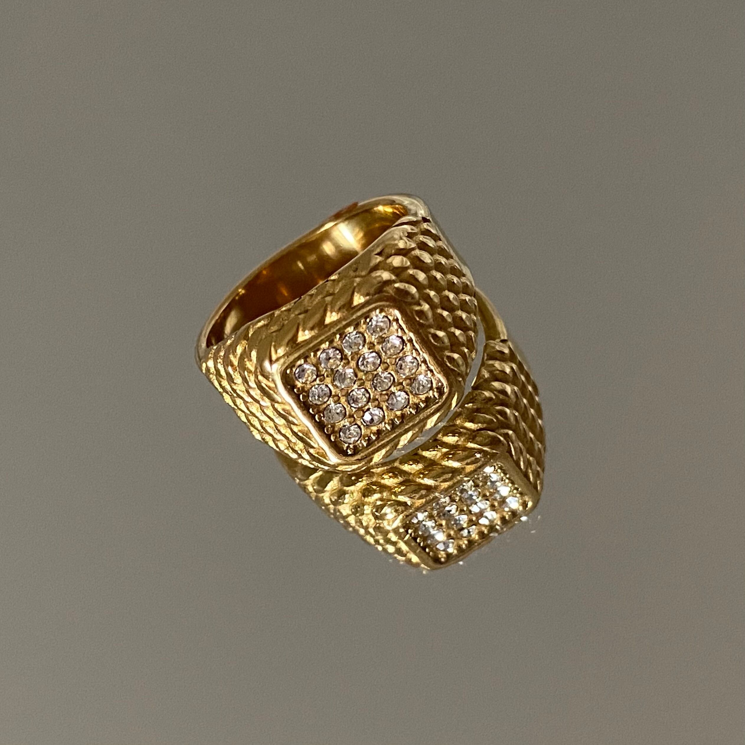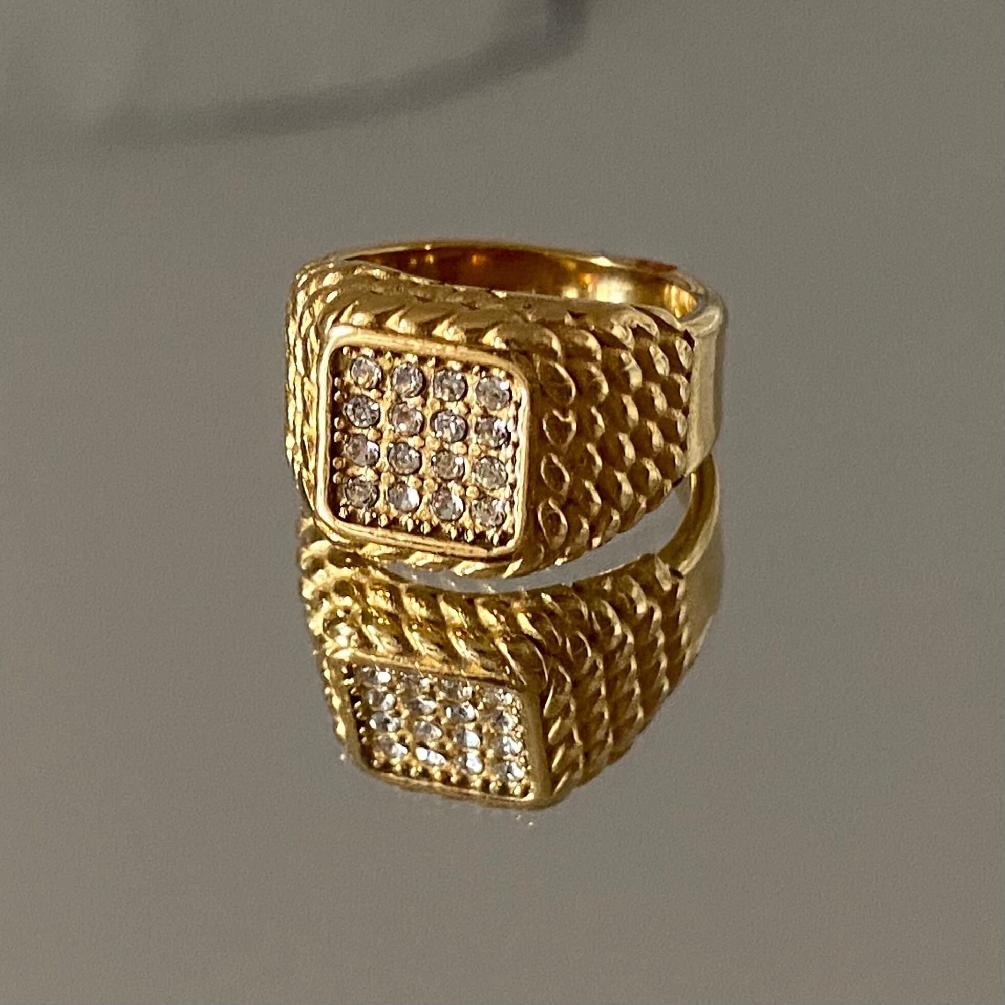 中央の16個のジルコニアストーンが光輝くデザイン"LEO Ⅱ"のシグネットリング。